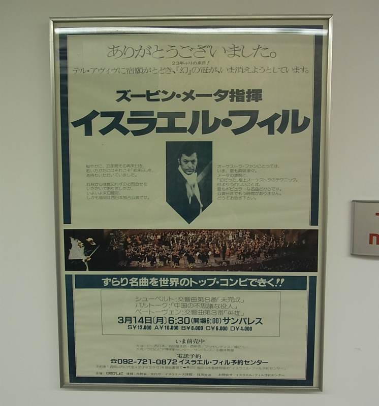 本選会場のバックステージに飾ってあったメータ&イスラエルフィル来日公演のポスター。上部にある「ありがとうございました」の意味がよくわからない。